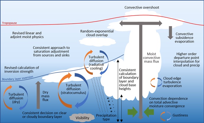 There has been a major revision to the representation of physical processes in IFS Cycle 47r3. The illustration below shows the scope of the changes.