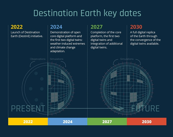 ECMWF will make sure that the EU’s Destination Earth (DestinE) initiative has completed the first steps in developing highly accurate replicas of Earth to facilitate action on climate change and environmental extremes by mid-2024.