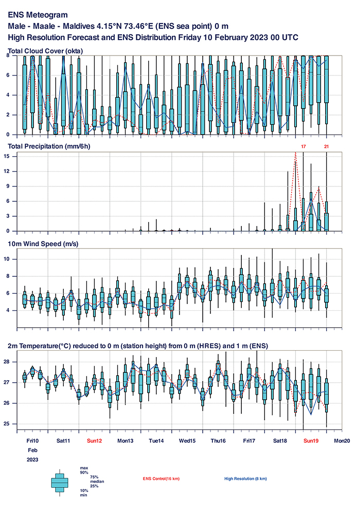 Figure 3: ECMWF meteogram for Malé City, the capital of the Maldives.