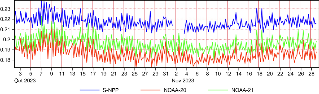 The on‑demand plotting of observation monitoring makes it possible to perform daily updates of all products (instead of weekly), enables plotting of time series at various temporal lengths (two months, 12 months, and the whole lifetime of the data), and makes it possible to overlay statistics from available satellites in one and the same plot (Figure 4).